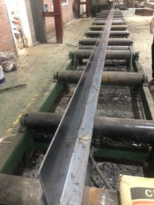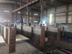 Quá trình sản xuất đang nói đến các cấu kiện thép tổ hợp. Bản bụng, cánh của các cấu kiện được cắt ra từ các thép tấm có các chiều dày cơ bản 6mm, 8mm, 10mm, 12mm, 14mm… bằng các máy CNC và máy cắt thủy lực.