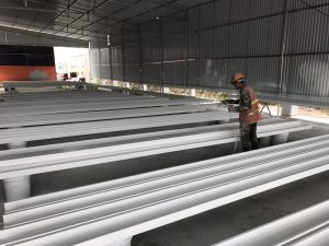 Độ bền của cấu kiện thép khi thi công và trong quá trình sử dụng phụ thuộc rất nhiều vào bề mặt sơn phủ để bảo vệ cấu kiện khỏi các tác động của môi trường. Các cấu kiện được sơn 1 lớp sơn chống gỉ và 2 lớp sơn màu với màu sắc phụ thuộc yêu cầu của chủ đầu tư.