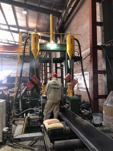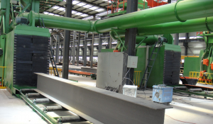 Máy phun bi làm sạch dầm.